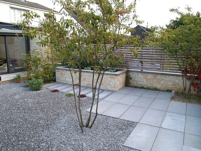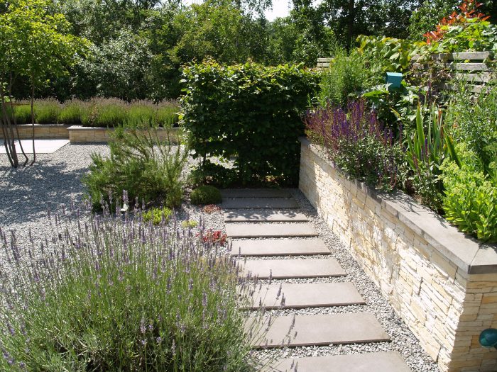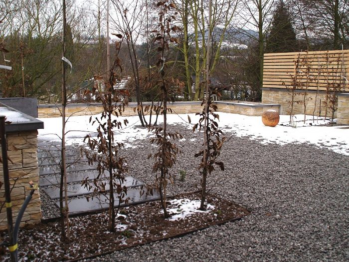 Die Fotos unten zeigen den Entwicklungstand des Gartens zu unterschiedlichen Zeitpunkten – direkt nach der Fertigstellung, ein Jahr später und drei Jahre später.