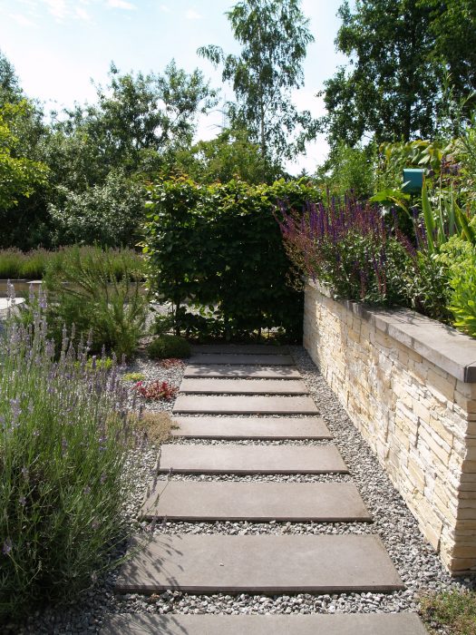 Kleine räumliche Situationen zu lösen sind eine Herausforderung und zugleich eine spannende Aufgabe. Unter der visuellen Einbeziehung der Umgebung und dem gezielten Einsatz weniger Gestaltungselemente gelingt es hier, einem kleinen Garten ein sehr angenehmes, großzügiges Raumgefühl zu verleihen.
